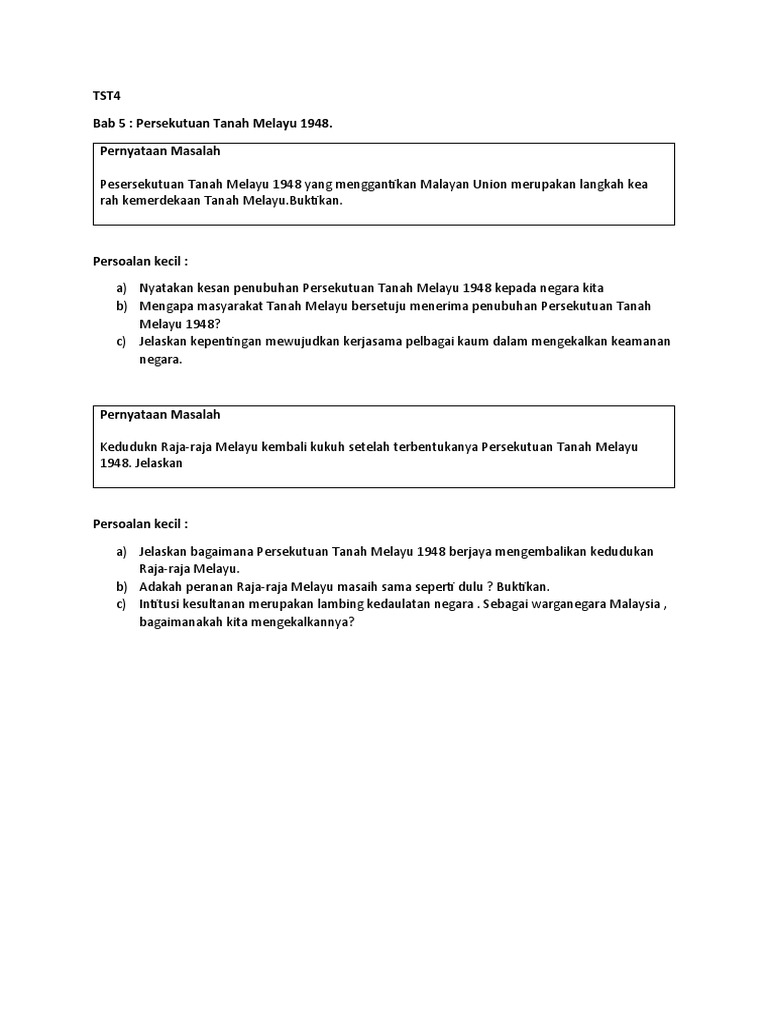 Related : Kesan Penubuhan Persekutuan Tanah Melayu 1948 / Bab 5 tingkatan 4topik ini menerangkan kesan pembentukan persekutuan tanah melayu 1948..