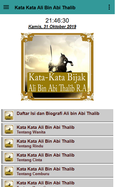 Karena yang menyukaimu tidak membutuhkan itu, dan yang membencimu. Ali bin abi thalib ra lahir di mekkah sekitar 13 rajab 23 tahun sebelum peristiwa hijrah ke madinah atau 599 masehi. Ali bin abi thalib adalah salah satu sahabat nabi yang sudah dijamin akan masuk surga. Di antara sikap tersebut adalah, rasa tanggung jawab atau amanah yang nantinya akan sangat berguna saat dia menjadi pemimpin. Setelah pertempuran jamal, khalifah ali bin abi thalib ra mendesak amir muawiah (ra), yang belum berbai'at kepada ali (ra) untuk tunduk kepadanya demi kepentingan terbaik islam.
